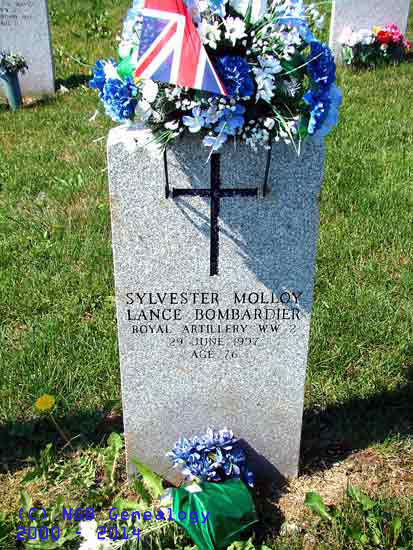 | Sylvester Molloy Lance Bombardier - Royal Artillery WW II 29 Jun 1997 Age 76 |