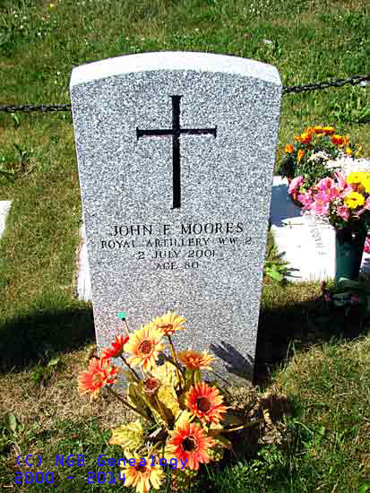 | John E. Moores Royal Artillery WW II 2 Jul 2001 Age 80 |