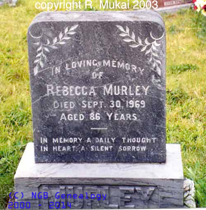 | Rebecca Murley DIED Sept. 30 1969 Aged 86 Years |