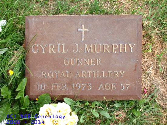 | Cyril J. Murphy Gunner Royal Artillery 10 Feb 1973 Age 57 |