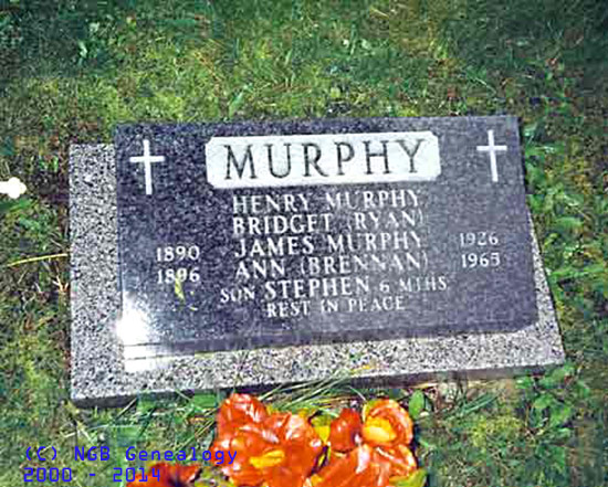 HENRY MURPHY BRIDGET (RYAN) MURPHY JAMES MURPHY ANN (BRENNAN) MURPHY STEPHEN MURPHY |