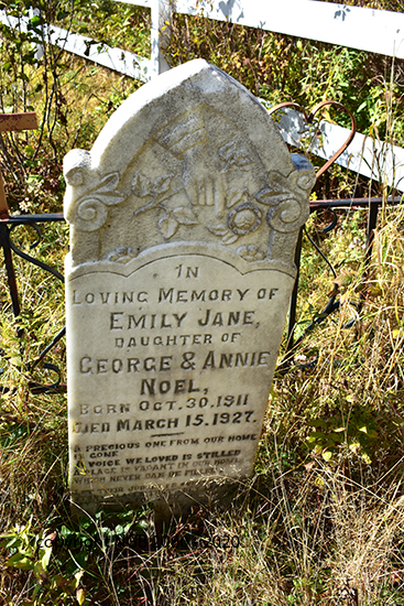 | EMILY JANE NOEL Born: Oct 30, 1911 Died: March 15, 1927 Daughter of George & Annie Noel |