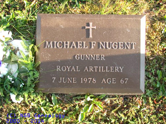 | Michael F. Nugent Gunner Royal Artillery 7 Jun 1978 Age 67 |