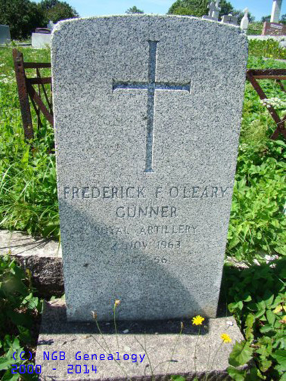 | Frederick F. O'Leary Gunner Royal Artillery 2 Nov 1963 Age 56 |