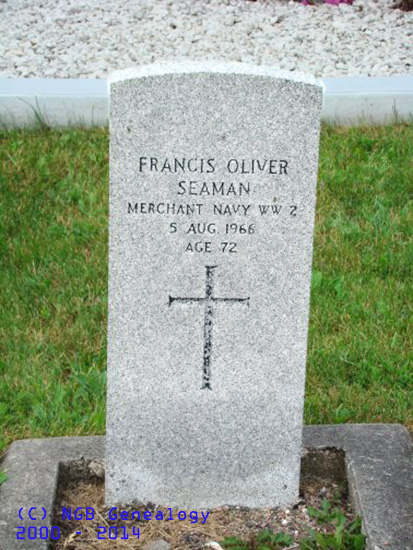 | Francis Oliver Seaman Merchant Navy WW 2 5 Aug 1966 Age 72 |