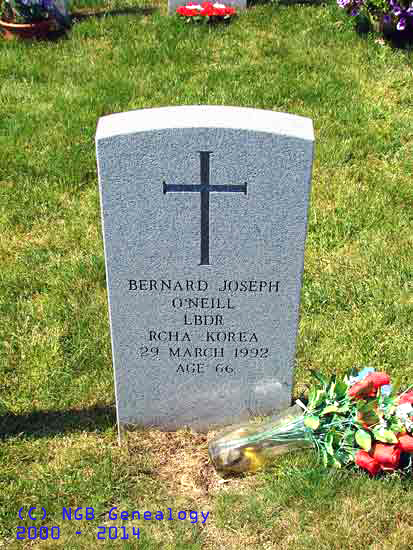 | Bernard Joseph O'Neill Lance Bombardier - R.C.H.A. Korea 29 Mar 1992 Age 66 |