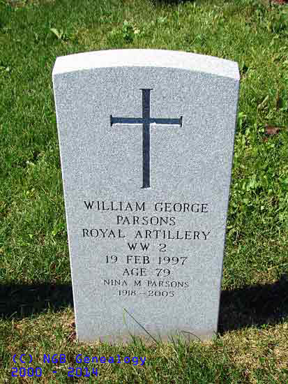 | William George Parsons Royal Artillery WW II 19 Feb 1997 Age 79 Nina M. Parsons 1918-2005 |