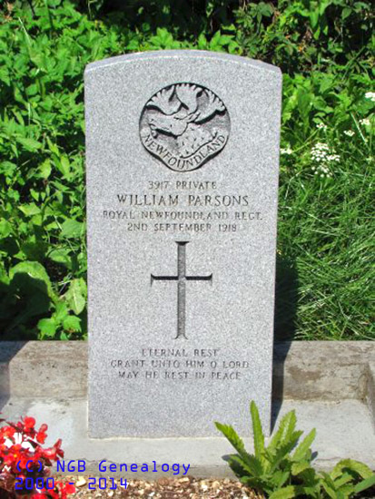 | 3917 Private William Parsons Royal Newfoundland Regiment 2 September 1918 ~ Eternal Rest Grant Unto Him O Lord May He Rest In Peace |