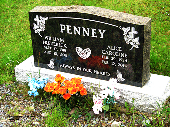 | WILLIAM FREDRICK PENNEY Born: Sept 17, 1918 Died: Aug 15, 1998 ALICE CAROLINE PENNEY Born: Feb 29, 1924 Died: Feb 12, 2014 |
