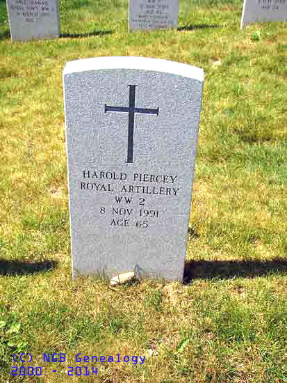 | Harold Piercey Royal Artillery WW II 8 Nov 1991 Age 65 |