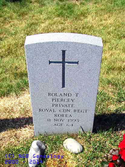 | Roland T. Piercey Private - Royal Canadian Regiment Korea 11 Nov 1995 Age 64 |