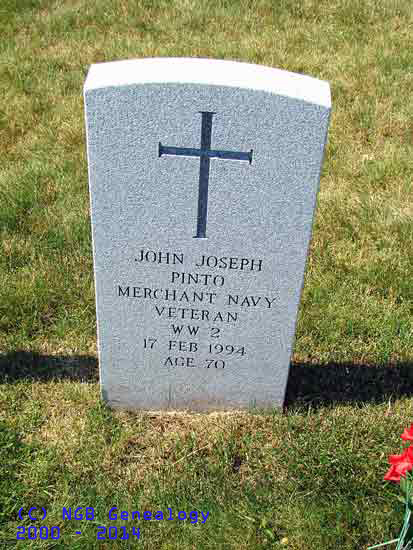 | John Joseph Pinto Merchant Navy Veteran WW II 17 Feb 1994 Age 70 |
