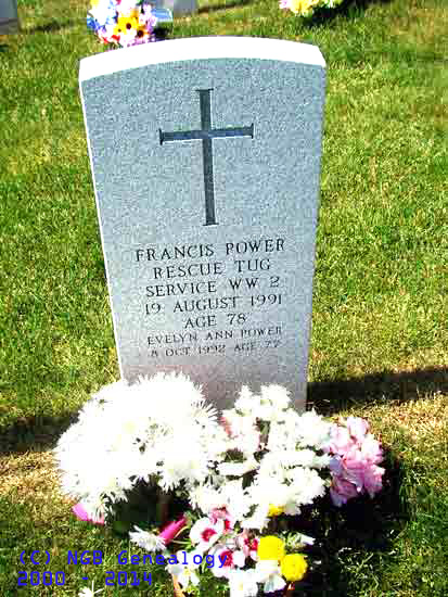 | Francis Power Rescue Tug Service WW II 19 Aug 1991 Age 78 Evelyn Ann Power 8 Oct 1992 Age 77 |