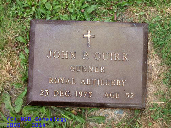| John P. Quirk Gunner Royal Artillery 23 Dec 1975 Age 52 |