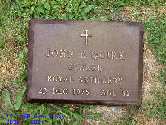 | John P. Quirk Gunner Royal Artillery 23 Dec 1975 Age 52 |