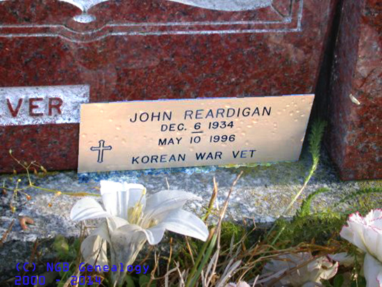| John Reardigan 6 Dec 1934 10 May 1996 Korean War Veteran Lest We Forget |