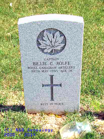 | Billie C. Rolfe Captain - Royal Canadian Artillery 28 May 1945 Age 26 Rest In Peace |