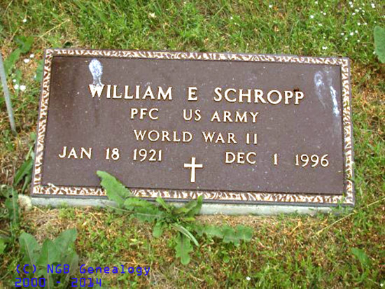 | William E. Schropp Private First Class United States Army ~ WW II 18 Jan 1921 ~ 1 Dec 1996 |