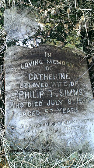 | CATHERINE SIMMS Died: July 9, 1933 Aged: 57 Years Beloved Wife of Philip T. Simms |