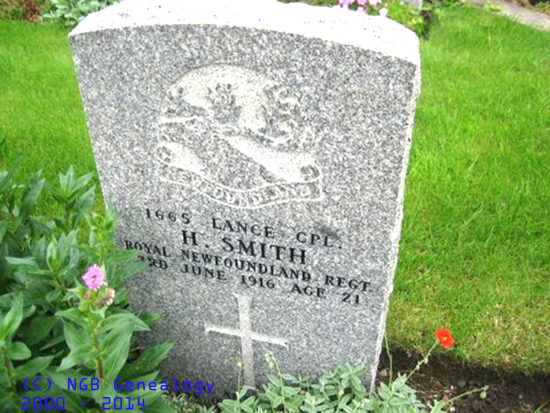 | Regimental # 1665 H. Smith Lance Corporal - Royal Newfoundland Regiment 3 Jun 1916 Age 21 |