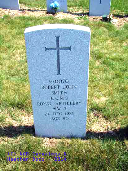 | 970070 Robert John Smith B.Q.M.S. - Royal Artillery WW II 26 Dec 1989 Age 80 |
