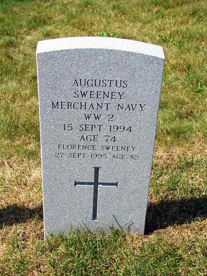 | Augustus Sweeney Merchant Navy WW II 15 Sep 1994 Age 74 Florence Sweeney 27 Sep 1995 Age 82 |