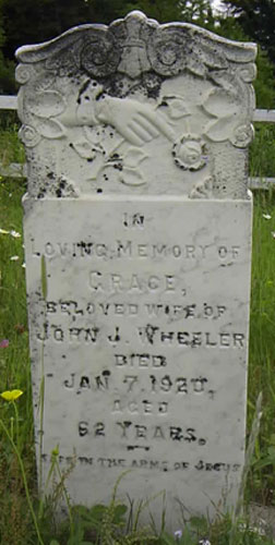 Wife of John J. Wheeler"."Safe in the arms of Jesus"