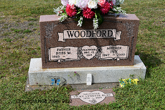 | IVY WOODFORD 1947 - 2000 Married: Dec 13, 1965 Daughter VICKY LYNETTE RUBY WOODFORD 1974 - 2019 |