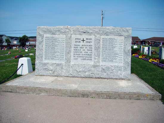FIELD OF HONOUR 1914 - 1918 1939 - 1945 THOSE HONOURED HERE DIED IN THE SERVICE OF THEIR COUNTRY AND LIE BURIED ELSEWHERE IN NEWFOUNDLAND AND LABRADOR. Taken from Headstones, The General Protestant Mount Pleasant CemeterySt. John's, Newfoundland |