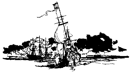 It was on the 28th of October, 1712, that buccaneer Pearcival and his well-trained crew were to match their skill against a prosperous-looking ship, the barque "Southwind", twenty days out from Liverpool. Although the Southwind carried a crew of twenty-six and had some armament, she was no match for the wily Pearcival, who boldly sailed his ship up to the barque and fired on her without warning. this surprise attack had a stunning effect on the crew of the Southwind, and after a short and bloody encounter, she was taken over by Pearcival and his crew. Now that provisions were available again in good supply, the pirates worked like Trojans to clean up whatever loot was of value. In addition to a quantity of gold which Pearcival personally seized, the ship was stripped of all her armament - two small cannons, twenty muskets, and plenty of gunpowder of which Pearcival badly in need for his muskets. After the victory, the pickings became very poor and Pearcival decided to sail his ship south. In late November he arrived off the southern tip of Cuba, where he lay four days without sighting a ship. At dawn on the morning of December 2nd, he sighted a large square-rigged ship heading out to sea between his ship and the island. They immediately gave chase and, after a short battle, captured her. Pearcival's eyes almost dropped from their sockets when he learned that she was on her way to Spain with a valuable cargo of cloth, wine, rum, spices and perfumes. In addition she carried a shipment of gold and silver bars in strong-boxes in her cabin. Pearcival was charmed with his catch and he boasted to his crew that this was only the beginning of a successful voyage. but after this his luck ran out again, and for four long months he cruised the Carribean without coming into contact with anything worthwhile. The tropical rains kept up their water supply, but food became short. Each man was allowed two ounces of bread and four mugs of water a day. At last, pushed by hunger, Pearcival decided to sail his ship up north again, where he hoped to make contact with the fishing fleets working around the Grand Banks at that time of the year. Within the short space of six months, in the Grand Banks area, he robbed no less than twenty-eight fishing vessels of food and whatever valuables he thought worth taking. Fish he didn't want. He had had enough of that. By now Pearcival's ship was well laden with treasure, and the crew became anxious to get to land and dispose of their valuables to the highest bidder. but wily Pearcival had other ideas. He had to intention of sharing his wealth with the thirty-six members of his crew. The zest for the wealth was too strong within him for that. His idea was to quickly dispose of those whom he no longer wanted and to retain only those who had started the voyage with him on the Lily Ann. By entertaining such an idea, Pearcival really let himself in for trouble. When the watch came off duty with one and two men missing several nights in a row, the reminder of the crew became suspicious of their captain, and from then onwards Pearcival was really sitting on a powder keg. By now eight or ten of the men aboard had become disgruntled and under the leadership of John constance the plotting for Pearcival's destruction began. Soon afterwords trouble broke out across the deck and the noise of quarreling men shattered the calm. Someone yelled "Mutiny" to Pearcival, who came running from his cabin, but before he had gained the deck a mighty blow from a winch in John Constance's hand laid him low. During the scuffle, fire broke out in the fo'castle and made such headway that the vessel was burned to the water-line and sank, taking with her the majority of the crew, as well as all her valuable cargo. Thus it was that the voyage which began in Placentia Bay on a small fishing smack the "Lily Ann" almost twelve months before ended in disaster for the self-styled pirate king, George Pearcival.