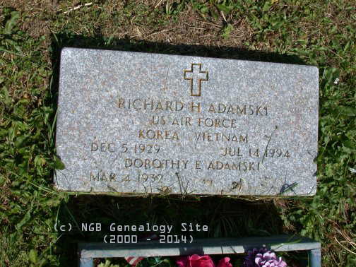 | Richard H. Adamski United States Air Force Korea ~ Vietnam Dec 5 1929 ~ Jul 14 1994 ~ Dorothy E. Adamski Mar 4 1932 ~ |