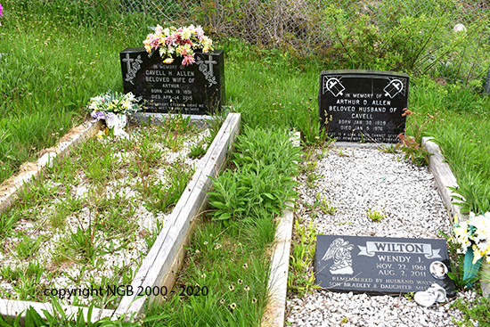 | ARTHUR D. ALLEN Born: Jan 30, 1929 Died: Jan 5, 1976 CAVELL H. ALLEN Born: Jan 19, 1931 Died: April 14, 2015 WENDY J. WILTON Born: Nov 22, 1961 Died: Aug 2, 2011 Husband of Wayne Wilton |