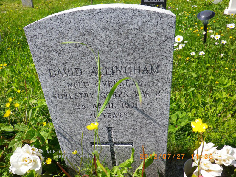 | David Allingham Newfoundland Overseas Forestry Unit WW 2 28Apr 1991 71 Years |