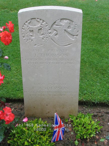 | 1069 Private I. Anderson Royal Newfoundland Regiment WW I 1 Jul 1916 Age 20 |