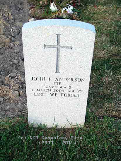 | John F. Anderson Private - R.C.A.M.C. WW II 8 Mar 2005 Age 79 Lest We Forget |