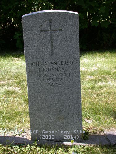 | John A. Anderson Lieutenant 196 Battalion Canadian Expeditionary Force 11 Apr 1950 Age 54 |