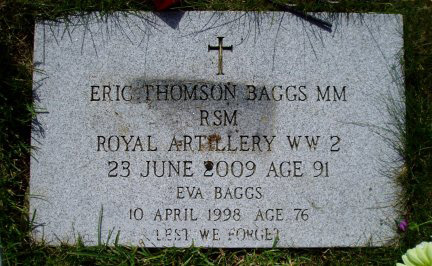 MM R.S.M. Royal Artillery WW 2 23 Jun 2009 Age 91 Eva Baggs 10 April 1998 Age 76 LEST WE FORGET |