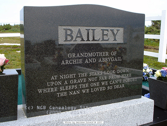 | ARCHIBALD BAILEY Born: Feb 26, 1944 Died: March 14, 1993 MARY JANE BAILEY Born: Jan 17, 1948 Died: July 16, 1997 |