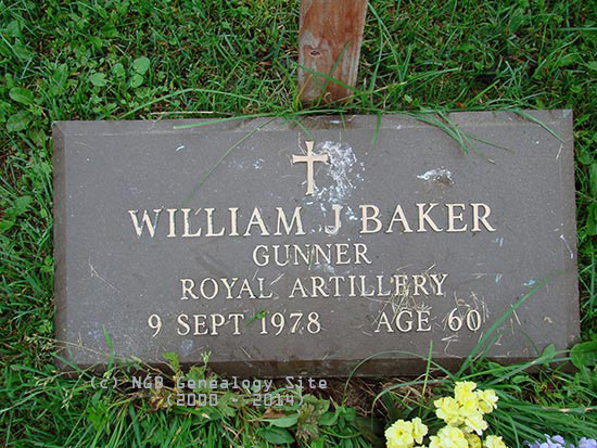 | William J. Baker Gunner Royal Artillery 9 Sept 1978 Age 60 |