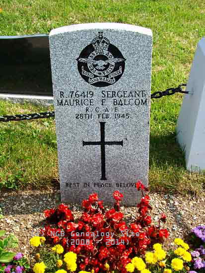 | R76419 Maurice F. Balcom Sergeant - R.C.A.F. 28 Feb 1945 Rest In Peace Beloved |