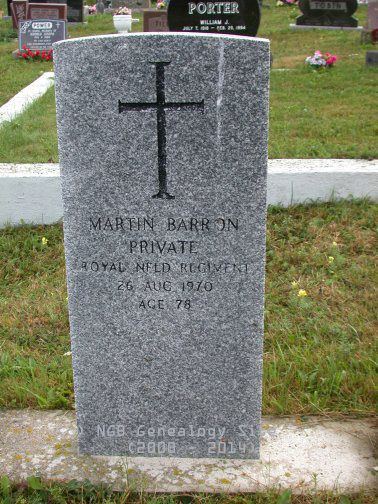 | Martin Barron Private Royal Newfoundland Regiment 26 Aug 1970 Age 78 |