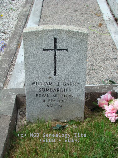 | William J. Barry Bombardier Royal Artillery 14 Feb 1969 Age 56 |