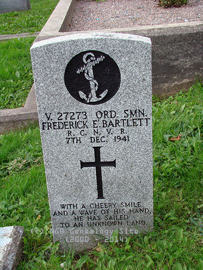 | V. 27273 Ord. Smn. Frederick E. Bartlett Royal Canadian Navy Volunteer Reserve 7th Dec 1941 ~ With A Cheery Smile And A Wave Of His Hand He Has Sailed To An Unknown Land |