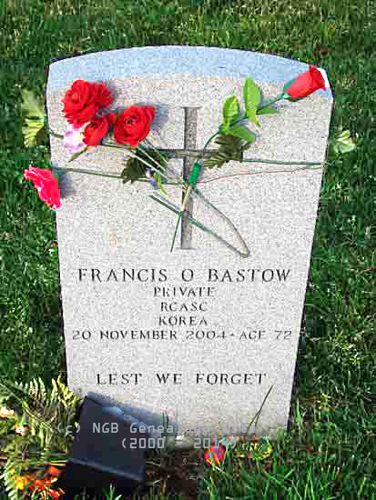 | Francis O. Bastow Private - R.C.A.S.C. Korea 20 Nov 2004 Age 72 Lest We Forget |