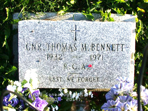 | Gunner Thomas M. Bennett 1932 ~ 1971 Royal Canadian Artillery ~ Lest We Forget |