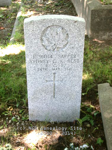 | F 91014 Sapper Sydney C.K. Best Royal Canadian Engineers 24th May 1941 |