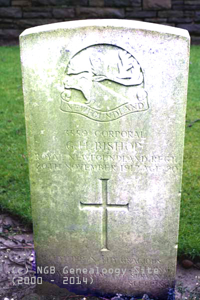 | Regt # 3559 Corporal George H. Bishop Royal Newfoundland Regiment 20th Nov 1917 Age 20 |