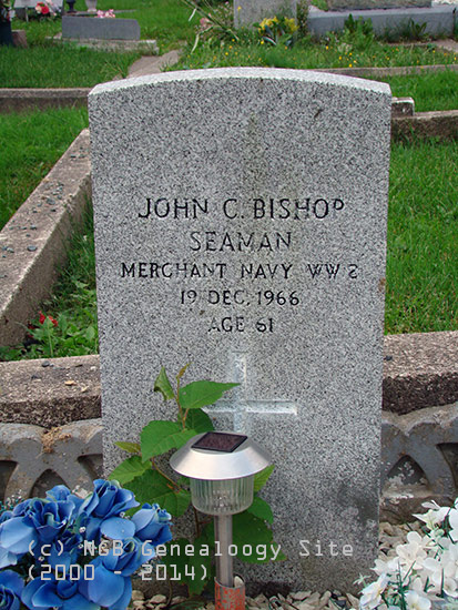| John C. Bishop Seaman Merchant Navy WW 2 19 Dec 1966 Age 61 |