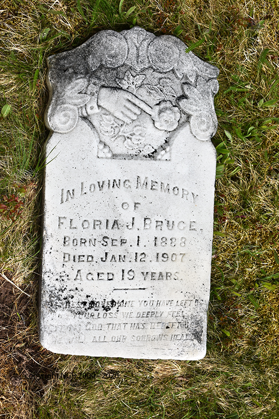 | FLORIA J. BRUCE Born: Sept 1, 1888 Died: Jan 12, 1907 Aged: 19 Years |