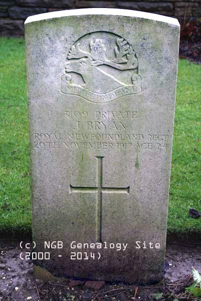 | Regt # 3109 Pte John Bryan Royal Newfoundland Regiment 20th Nov 1917 Age 24 |